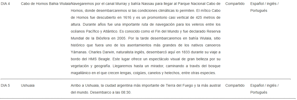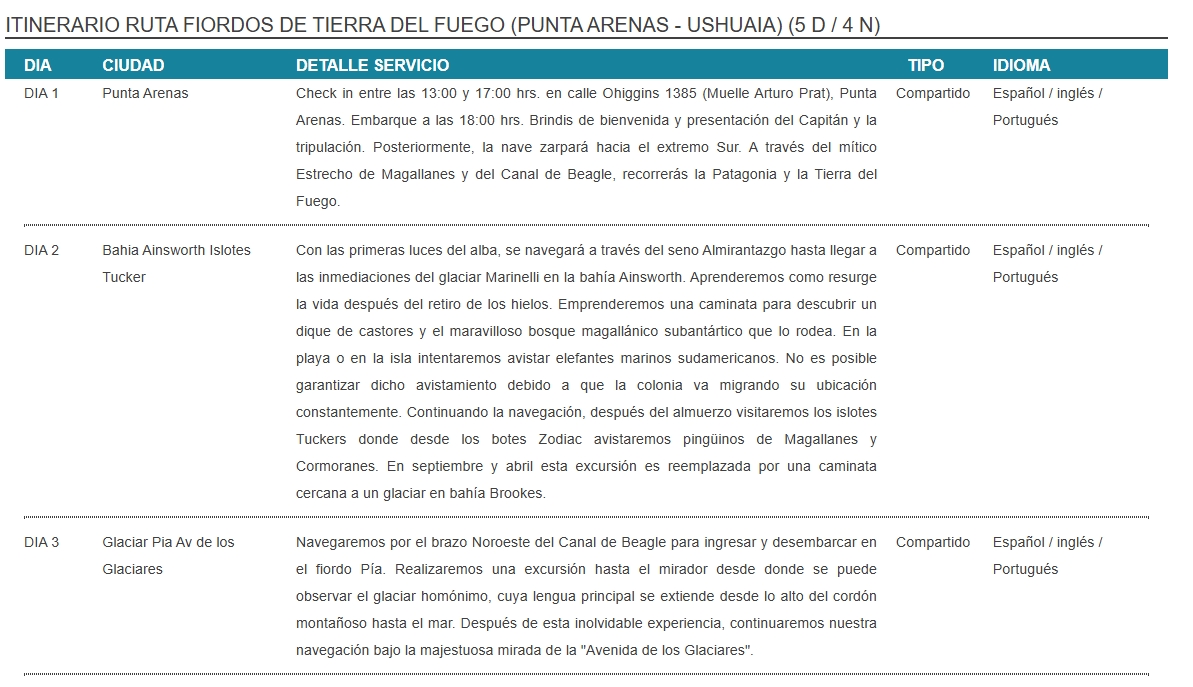 Explora la ruta de Punta Arenas a Ushuaia y disfruta de la belleza natural e impresionante de la Patagonia y Tierra del Fuego. Vive una gran aventura en el Fin del Mundo, a bordo de un barco sorprendentemente cómodo, acompañado por una tripulación y guías expertos que, además de la seguridad, se encargarán de que tu viaje sea extraordinario e inolvidable. A bordo de nuestros cruceros Patagónicos experimentarás la naturaleza y la fauna salvaje como nunca lo has hecho antes. Acércate y vive en primera persona la fauna silvestre con pingüinos, las aves marinas y los lobos de mar. Contempla los cálidos matices de las puestas de sol Patagónicas, observa las hermosas montañas cubiertas de nieve, navega desde Punta Arenas hasta el Cabo de Hornos y mucho más.